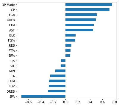 → ๋ฐ๋ผ์ ์ ๋ชจ๋ธ์ ๊ฒฝ์ฐ 3P Made, GP, FGA feature๊ฐ ์ ์ธ ํ๋ ์ด์ด๊ฐ 5๋ ๋์ ์ ๋๊ฐ๋ค๋ ์ ์ ํฐ ๊ธฐ์ฌ. ํนํ 3P Made, ์ฆ 3์ ์ฑ๊ณต์ฌ๋ถ๊ฐ ์ง๋ํ ์ํฅ์ ๋ฏธ์น๋ค๋ ๊ฑธ ํ์ธํ ์ ์์!