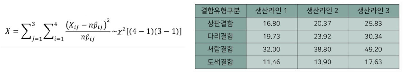 ex) 생산라인1에서 나온 상판결함의 기대빈도 = (생산라인 중 생산라인 1일 확률) x (결함유형 중 상판결함일 확률) x 전체 표본 수