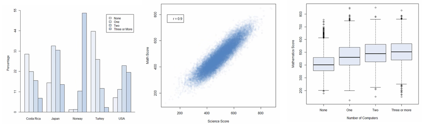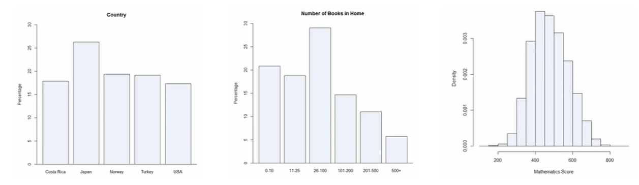 e.x) data using bar chart example (nominal data, ordinal data, and continuous data in order)