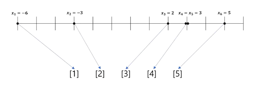 ๐ธ ์ฝ๊ฒ ๋งํ์๋ฉด, ๋๋คํ๊ฒ ๋ฐฐ์น๋ ๋ค์ํ ํฌ๊ธฐ์ ์ซ์๋ค์ index์ ํฌ๊ธฐ๋ง์ผ๋ก ์ค๋ณต ์์ด ์์๋๋ก ๋ฐฐ์นํด ์์ถํจ๊ณผ๋ฅผ ๊ฐ์ ธ์จ๋ค. ์ด ๋ hash map์ผ๋ก ๊ฐ ์ค์ number(key)์ ๋์ํ๋ index(value)๋ฅผ ๋ง๋ค ์ ์๋ค. (์ค๋ณต ์์ด ์์ถ์ด๋ฏ๋ก number์ ์ค๋ณต ์๋ key๋ก ์ ์ฅ)