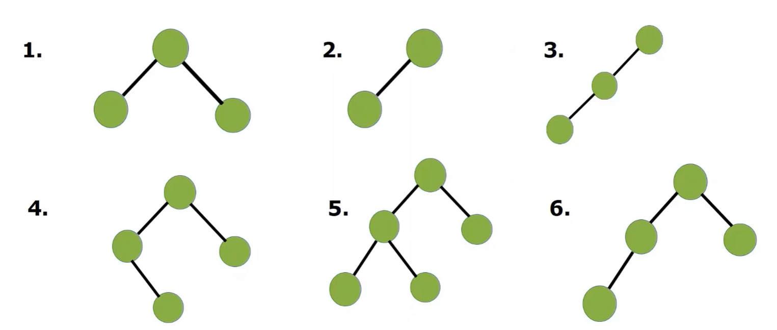 🎊 Complete Binary Tree(CBT; 완전 이진 트리)란, root 노드부터 시작하여 왼쪽 자식 노드, 오른쪽 자식 노드 순서대로 데이터가 차례대로 삽입되는 tree를 뜻한다. 'all levels of the tree, except possibly the last one (deepest) are fully filled, and, if the last level of the tree is not complete, the nodes of that level are filled from left to right.' 맨 마지막 level을 제외하고 모든 level이 채워져 있고, 마지막 level의 경우 왼쪽부터 자식 노드가 최대한 채워진 tree라 보면 된다. 아래 왼쪽 그림과 같이 Complete Binary Tree를 채울 수 있다. 그렇다면 CBT 정의에 의해 아래 오른쪽 그림에서 CBT는 1, 2, 5, 6임을 알 수 있다.