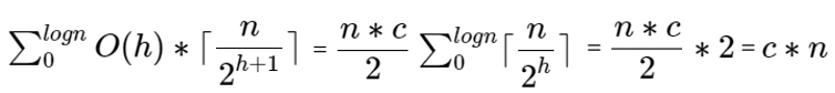 (3) 각 모든 층의 시간복잡도를 구하면, n개의 node에서 층의 개수는 logn이므로 아래와 같이 표현할 수 있다. logn을 ∞로 바꾸면 harmonic progression에 의해서 sigma 값은 2가 된다.