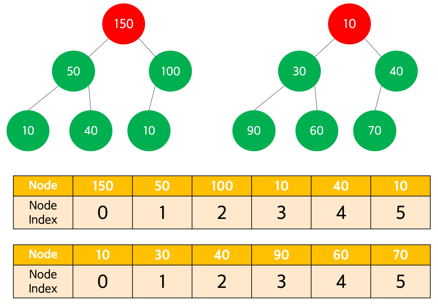 🎊 상위 node의 index가 i라면(index 0부터 시작 시) 하위 left node의 index는 2i+1, 하위 right node의 index는 2i+2이다. 반대로 자식 node의 index가 x라면 paret node의 index는 floor((x-1)/2)