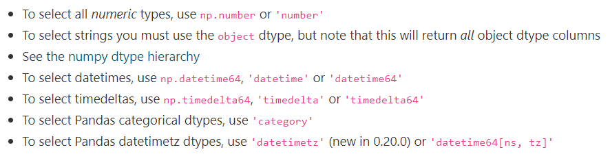→ 그렇다면, include 또는 exclude 인자로 어떤 값이 들어갈 것인가? 원하는 dtypes 종류를 넣으면 된다