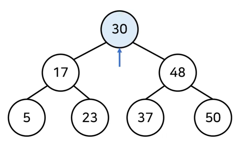 ๐ณ binary search tree๊ฐ ์ด๋ฏธ ๊ตฌ์ฑ๋์ด ์๋ค๊ณ ๊ฐ์ ํ๊ณ ๋ฐ์ดํฐ ์กฐํํ์. ์ฐพ๊ณ ์ ํ๋ ์์๊ฐ 37์ด๋ผ ๊ฐ์ ํ๋ฉด, root node๋ถํฐ ๋ฐฉ๋ฌธํด์ ํ์ ์งํ. ํ์ฌ node ๊ฐ์ 30์ด๋ฏ๋ก ์ฐพ๋ ์์๊ฐ ๊ฐ์ด ๋ ํผ. ๋ฐ๋ผ์ ํ์ฌ root node์์ ์ค๋ฅธ์ชฝ์ผ๋ก ๋ฐฉ๋ฌธ. ๊ทธ ๋ค์ ๋จ๊ณ์์๋ ๊ฐ์ด 48์ธ node ๋ฐฉ๋ฌธ(์ฆ root node์ ์ผ์ชฝ ๋ฒ์๋ ๋ฐฉ๋ฌธํ ํ์ ์์ - ํ์ ๋ฒ์ ์ ๋ฐ์ผ๋ก ์ค์ด๋ฆ). 37์ 48๋ณด๋ค ์์ผ๋ฏ๋ก ์ผ์ชฝ ๋ฐฉ๋ฌธ. 37 ํ์ธ! ์์๋ฅผ ์ฐพ์์ผ๋ฏ๋ก ํ์ ์ข ๋ฃ