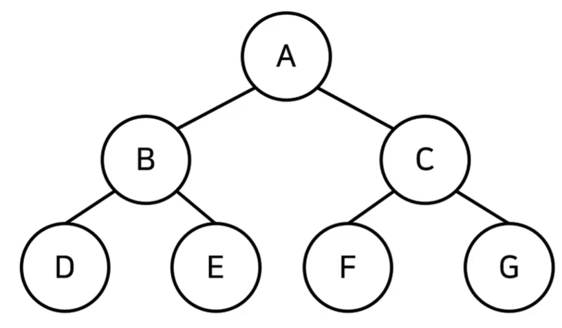 : ๋ฃจํธ์์ ์์ํด ๋งจ ์ผ์ชฝ ์์ ๋ ธ๋(D)๋ก ์ด๋. ๋ค์ ์๋ก ์ฌ๋ผ๊ฐ์ ๋ ธ๋(B) ์ถ๋ ฅ. ์ค๋ฅธ์ชฝ(E) ์ถ๋ ฅ. ๋ค์ ์๋ก ์ฌ๋ผ๊ฐ์ A ์ถ๋ ฅ. ์ค๋ฅธ์ชฝ ์์ ๋ ธ๋ C ์ถ๋ ฅ. ์ผ์ชฝ๋ถํฐ F ์ถ๋ ฅ. ๋ง์ง๋ง G ์ถ๋ ฅ