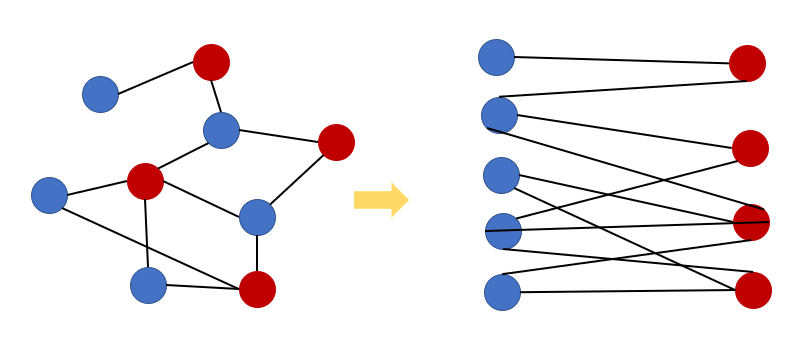 ① 매칭 문제: 예를 들어 job seeker와 job vacncy간의 연결이라든지, one set과 또 다른 other set간의 연결 문제에서 자주 사용되는 graph