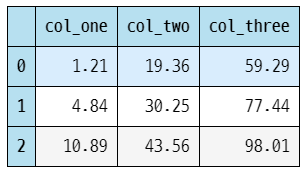 pd.DataFrame({'col_one':[1.21,4.84,10.89],