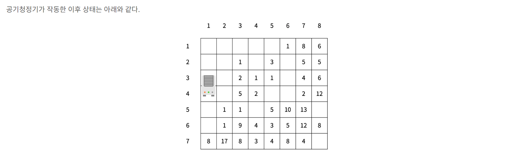 if 0<=nx<R and 0<=ny<C and (nx,ny) not in air_purifier: #if can spread