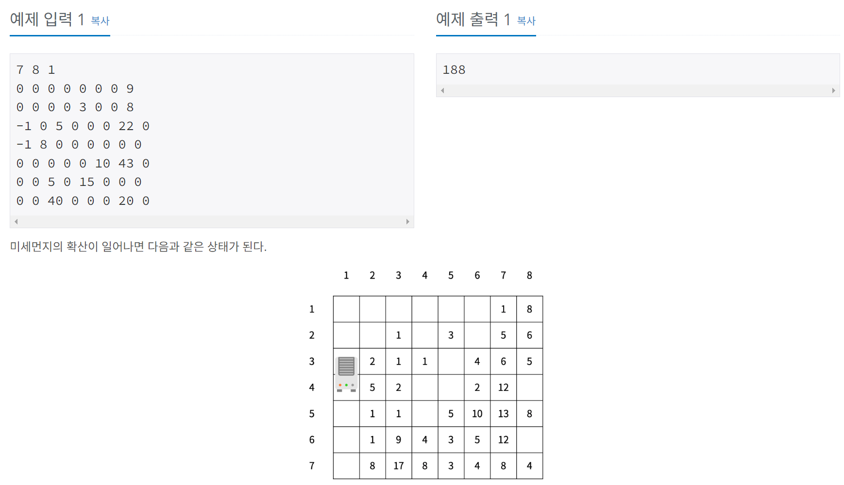 ② 구름인지 아닌지 알기 위해 미리 -1을 곱함. 어차피 음수인 경우는 존재하지 않고, 구름 자리에 1씩 올리므로 0은 없으므로 무방. 이후 (4) 단계에서 구름인 경우와 구름이 아닌 경우 한 번에 반복문 돌리기 가능