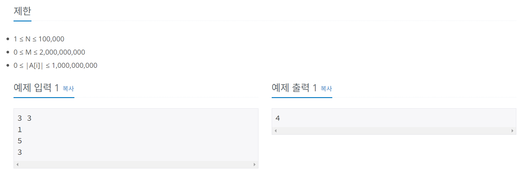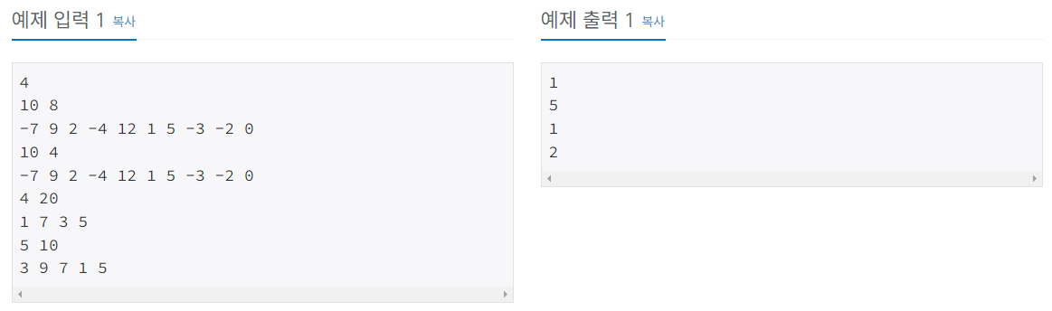 (2) x์ y ๋ ํฌ์ธํฐ ๋ง๋ค๊ณ , x๋ 0(index) ๊ณ ์ ํ ์ํ์์ y๋ฅผ 0(index)๋ถํฐ ์ค๋ฅธ์ชฝ์ผ๋ก ์ฐจ์ด๊ฐ M์ด์์ผ ๋๊น์ง ๋๋ฆฌ๊ธฐ