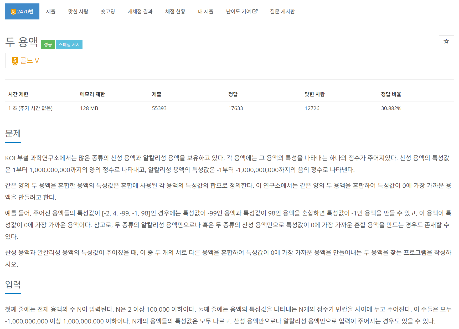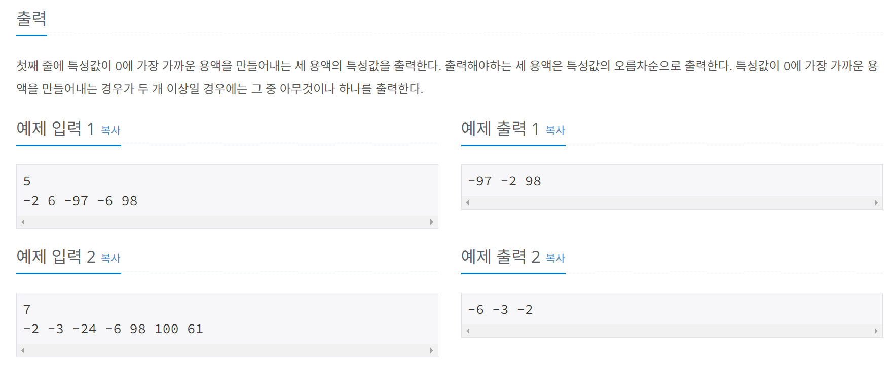 ๐งฆ ์ 2470 ๋ฌธ์ ์์ ์ ๋ ฌ๋ง ๋์ด์์ผ๋ฏ๋ก ์ ๋ ฌ๋ง ์๋ต.