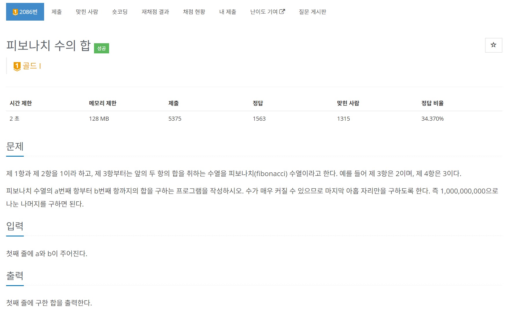 โ 2086 ํผ๋ณด๋์น ์์ ํฉ โ