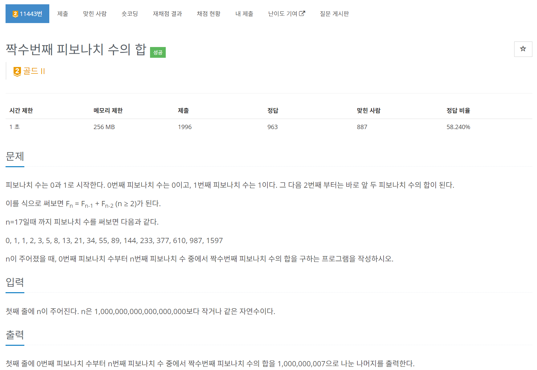 โ 11443 ์ง์๋ฒ์งธ ํผ๋ณด๋์น ์์ ํฉ โ