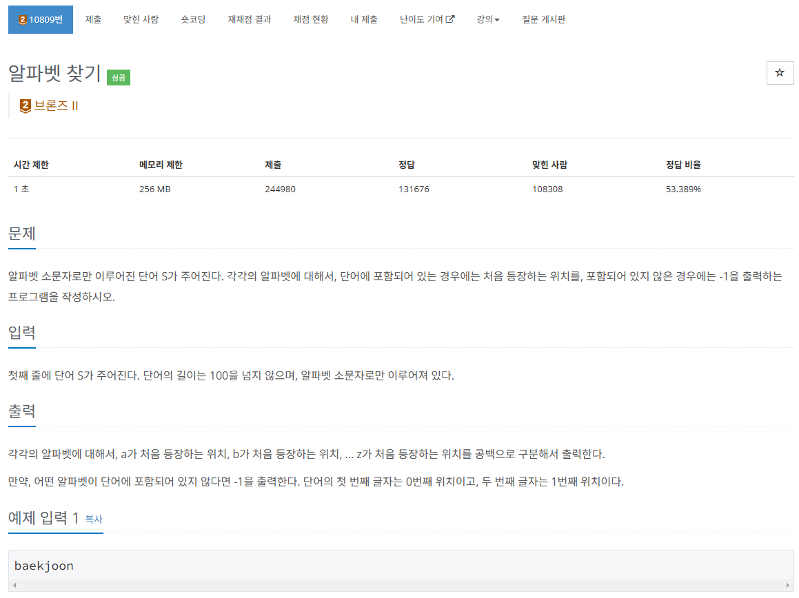 โ 10809 ์ํ๋ฒณ ์ฐพ๊ธฐ โ