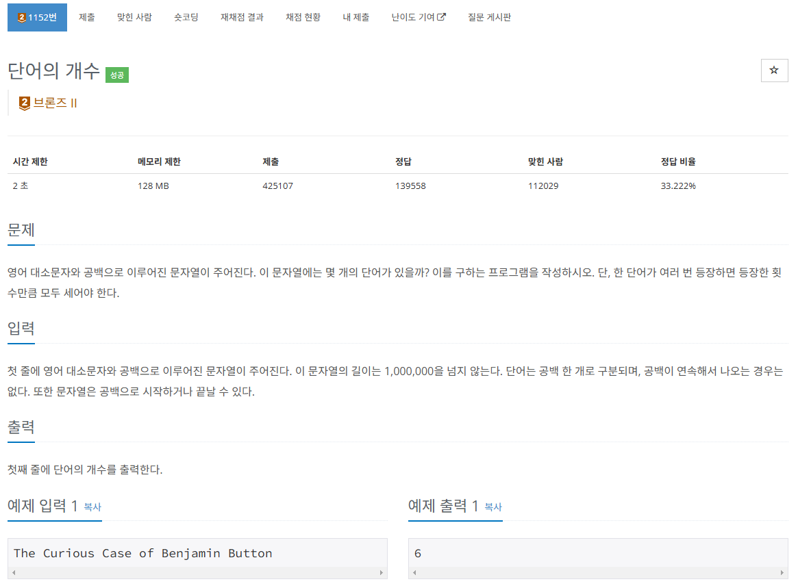 ๐ค ์ถ๊ฐ๋ก ๊ธธ์ด๊ฐ 1์ด๋ฉด์ ๋จ์ํ ๊ณต๋ฐฑ ํ๋๋ผ๋ฉด ๋จ์ด์ ๊ฐ์ 0์ด๋ฏ๋ก 0 ์ถ๋ ฅ / ๋งจ ์์ด ์๋ ๋๋ฒ์งธ ๋ฌธ์๋ถํฐ ๋งจ ๋ค๊ฐ ์๋ ๋งจ ๋ค ๋ฐ๋ก ์์ ๋ฌธ์ ๊น์ง์ ๋ฒ์์์ ' ' ๊ณต๋ฐฑ ๊ฐ์๋ฅผ ํ์ธํ๋ฏ๋ก for๋ฌธ ๋๋ฆฌ๋ ๋ณ์ ๋ฒ์์ ์ฃผ์.