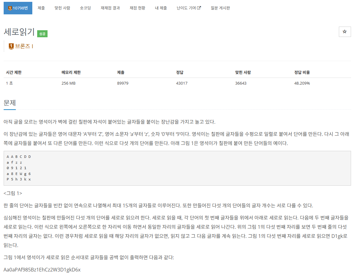 โ 10798 ์ธ๋ก์ฝ๊ธฐ โ
