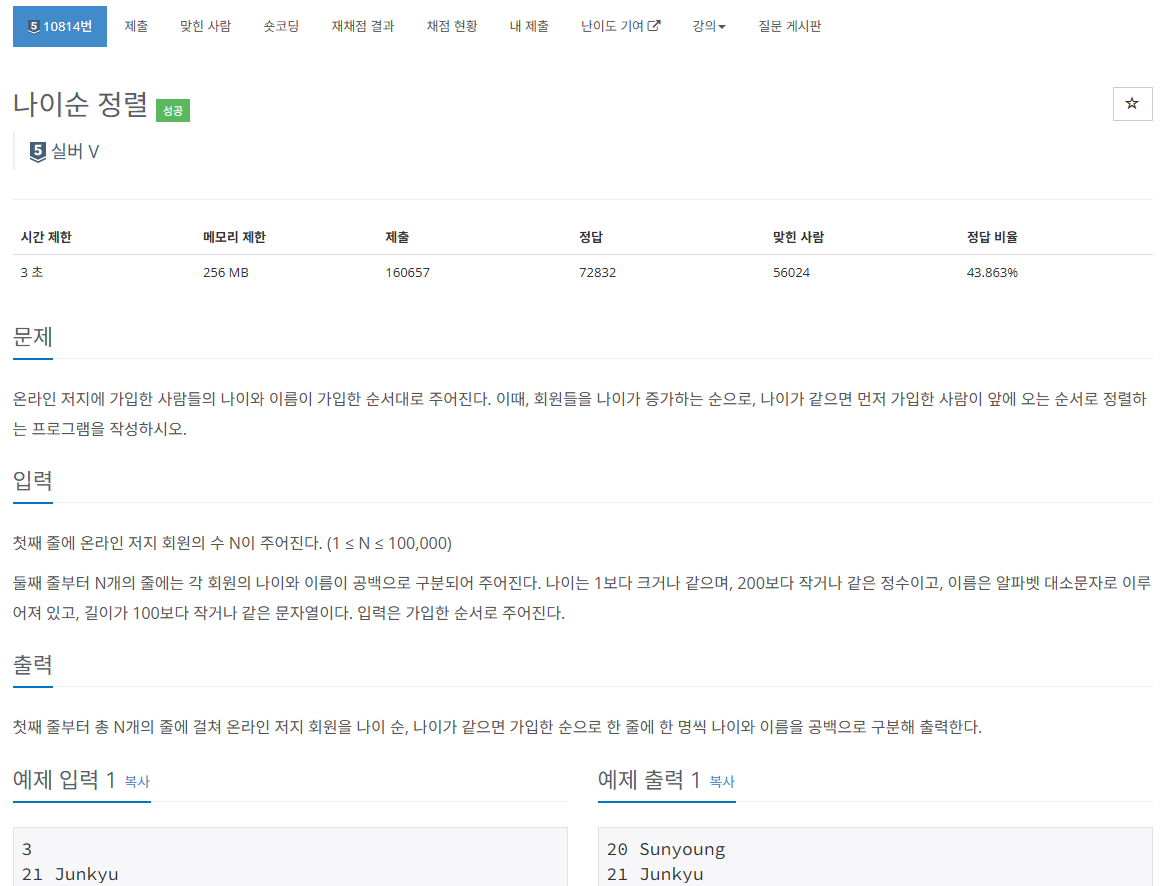 โ 10814 ๋์ด์ ์ ๋ ฌ โ