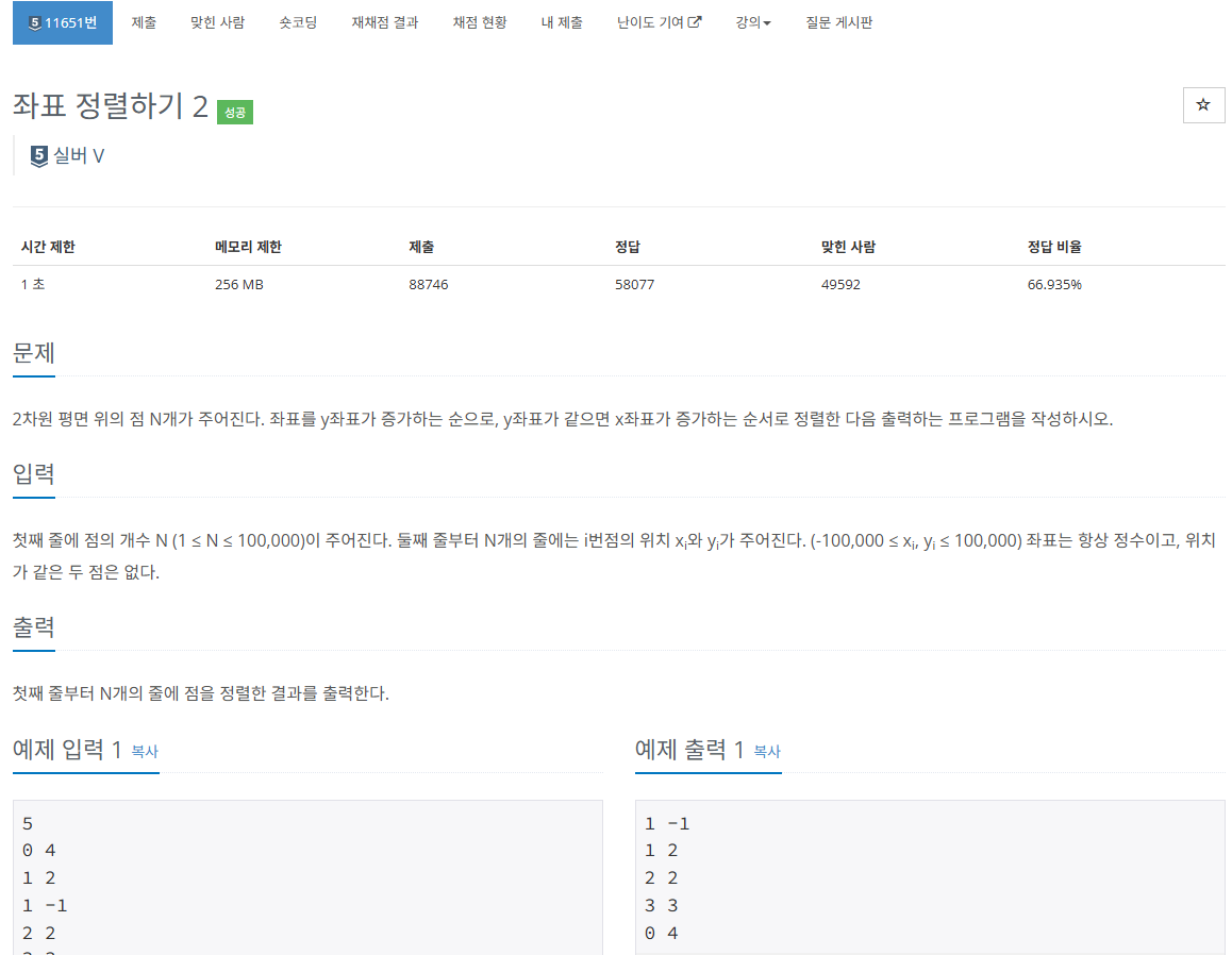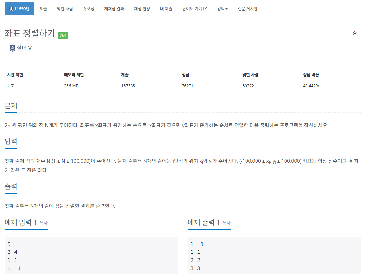 โ 11650 ์ขํ ์ ๋ ฌํ๊ธฐ โ
