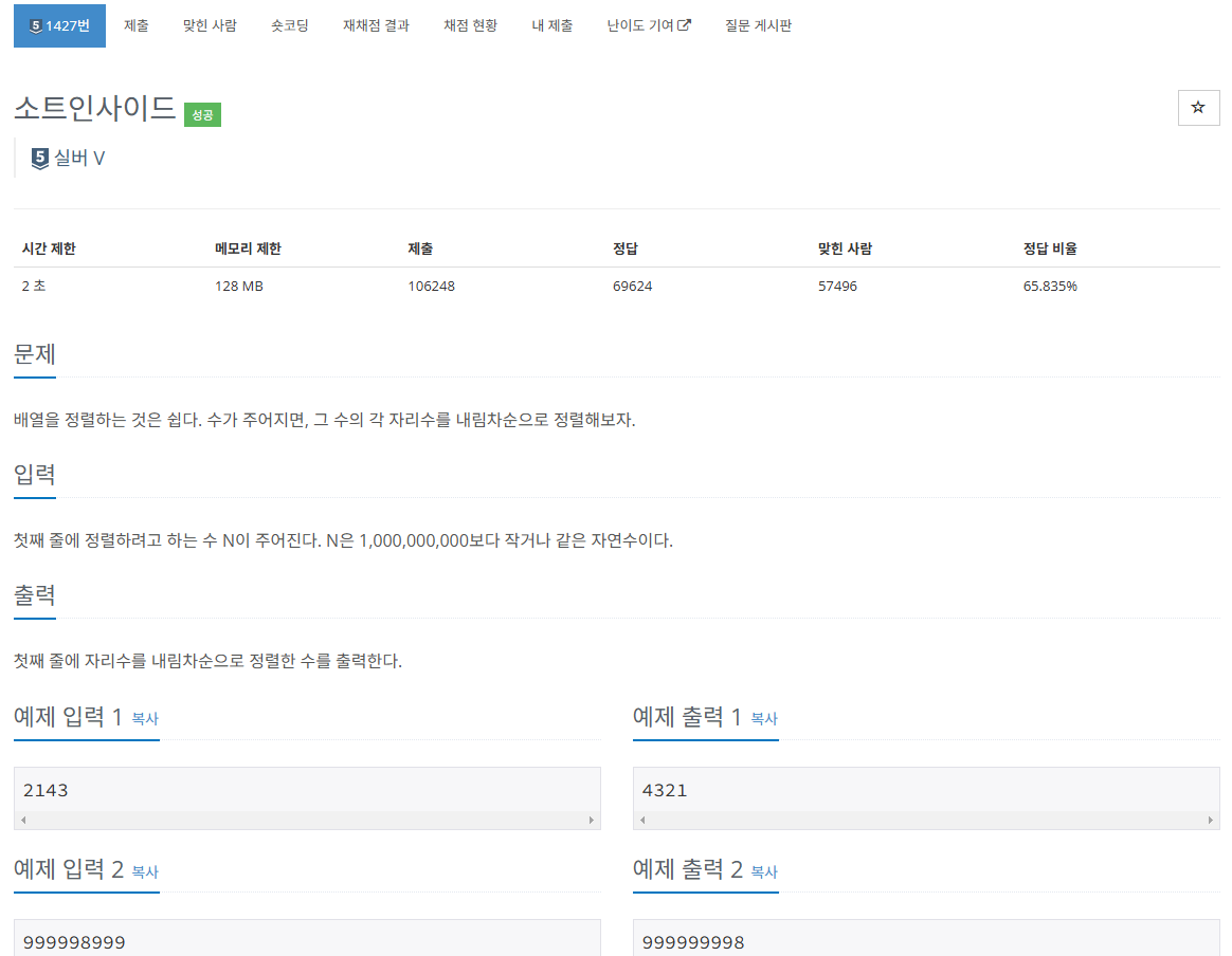 sort(N.begin(), N.end(), greater<char>());