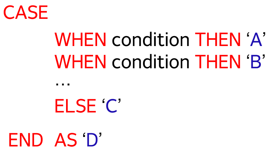 (아래 그림으로 기억) - 조건에 따라 A / B / C 나누어서 표현 / 나타나는 칼럼명은 D