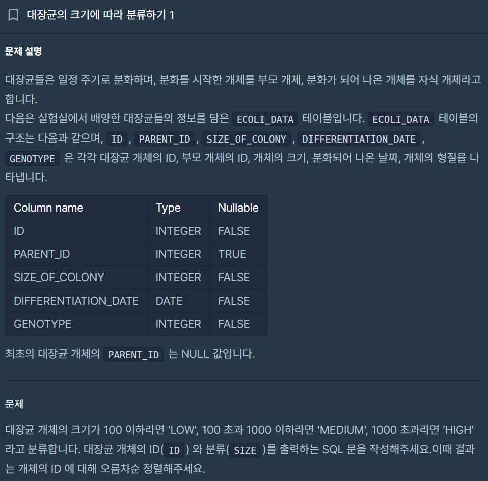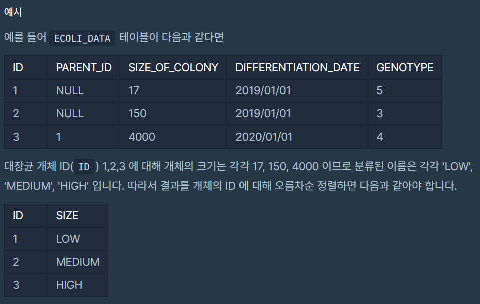(1) sql에서의 if문은 CASE ~ WHEN / ELSE ~ END 문으로 진행 가능. WHEN에 if문 조건을 넣어서 표시되는 글자는 THEN 오른쪽에 표시
