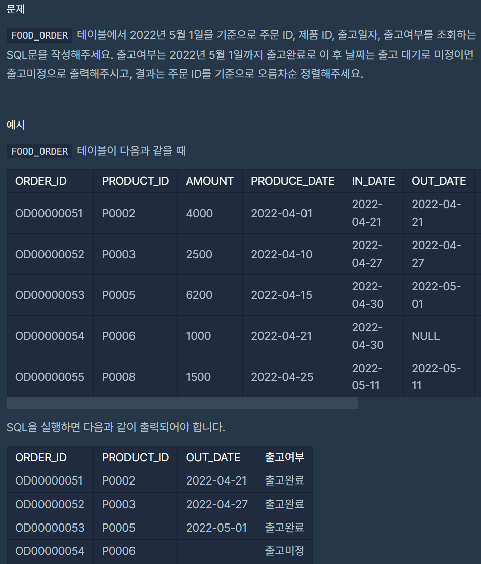 WHEN OUT_DATE <= '2022-05-01' THEN '출고완료'