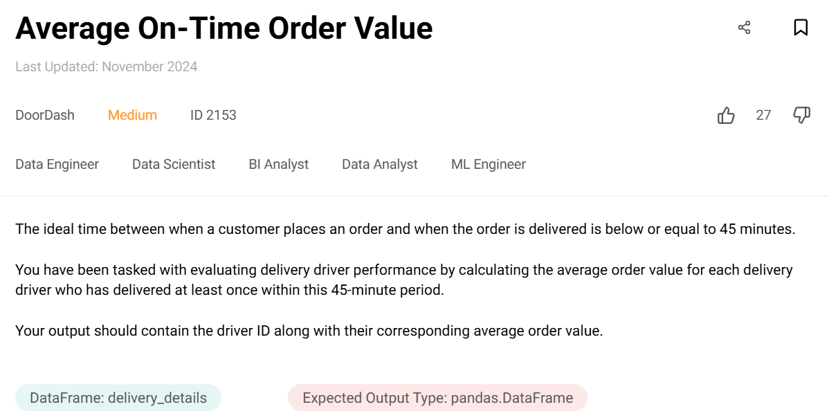 ๐ฅ ์ ์ํ duration time์ด 45๋ถ ์ดํ์ธ order๊ฐ ์ ์ด๋ ํ ๊ฐ ์๋ driver์ average order value ๊ตฌํ๊ธฐ.