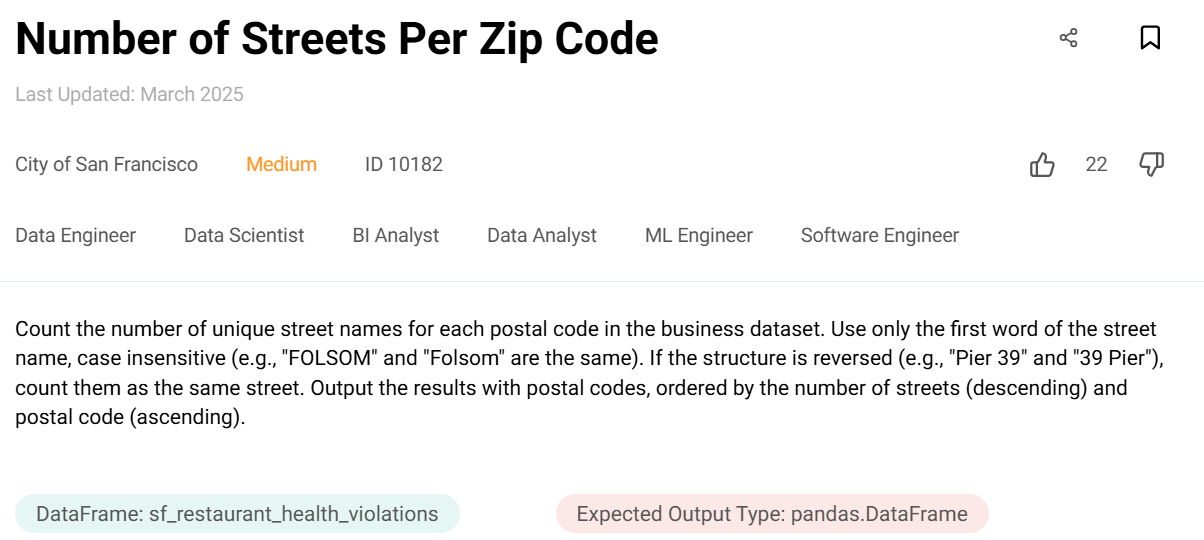 ๐ฅ street_str์์ street ์ด๋ฆ๋ง ์ถ์ถ. ์ด๋ฆ ์ถ์ถํ๊ณ , postal_code ๋ณ street ๊ฐ์ ์ถ์ถ. ์ดํ ๋ ์ด ๊ธฐ์ค์ ๋ฐ๋ผ ๋ด๋ฆผ/์ค๋ฆ์ฐจ์ ์ ๋ ฌ