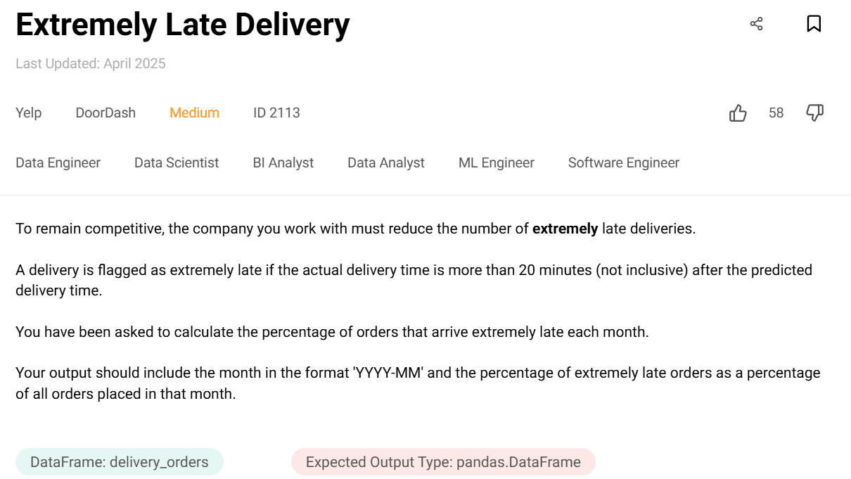 delivery_orders['is_extreme'] = (delivery_orders['actual_delivery_time'] > (delivery_orders['predicted_delivery_time'] + timedelta(minutes=20))).astype(int)