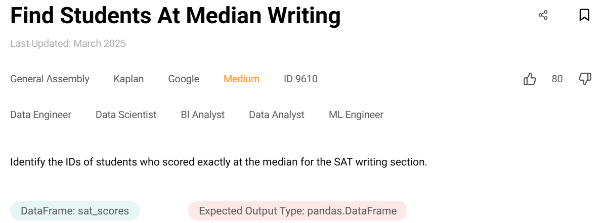 ๐ฅ sat_writing์ด median ๊ฐ์ ํด๋นํ๋ ๋ฐ์ดํฐ์ student_id ์ถ๋ ฅํ๊ธฐ