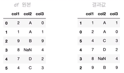 - (하단) col2 column 기준 오름차순 정렬 후, col1 column 기준 내림차순 정렬