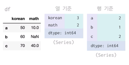 * default: 열 기준, NaN값 제외